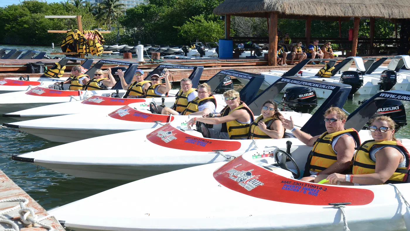 Driving a speed boat in Cancun is very easy and safe, our guides will explain the best way to drive our boats.